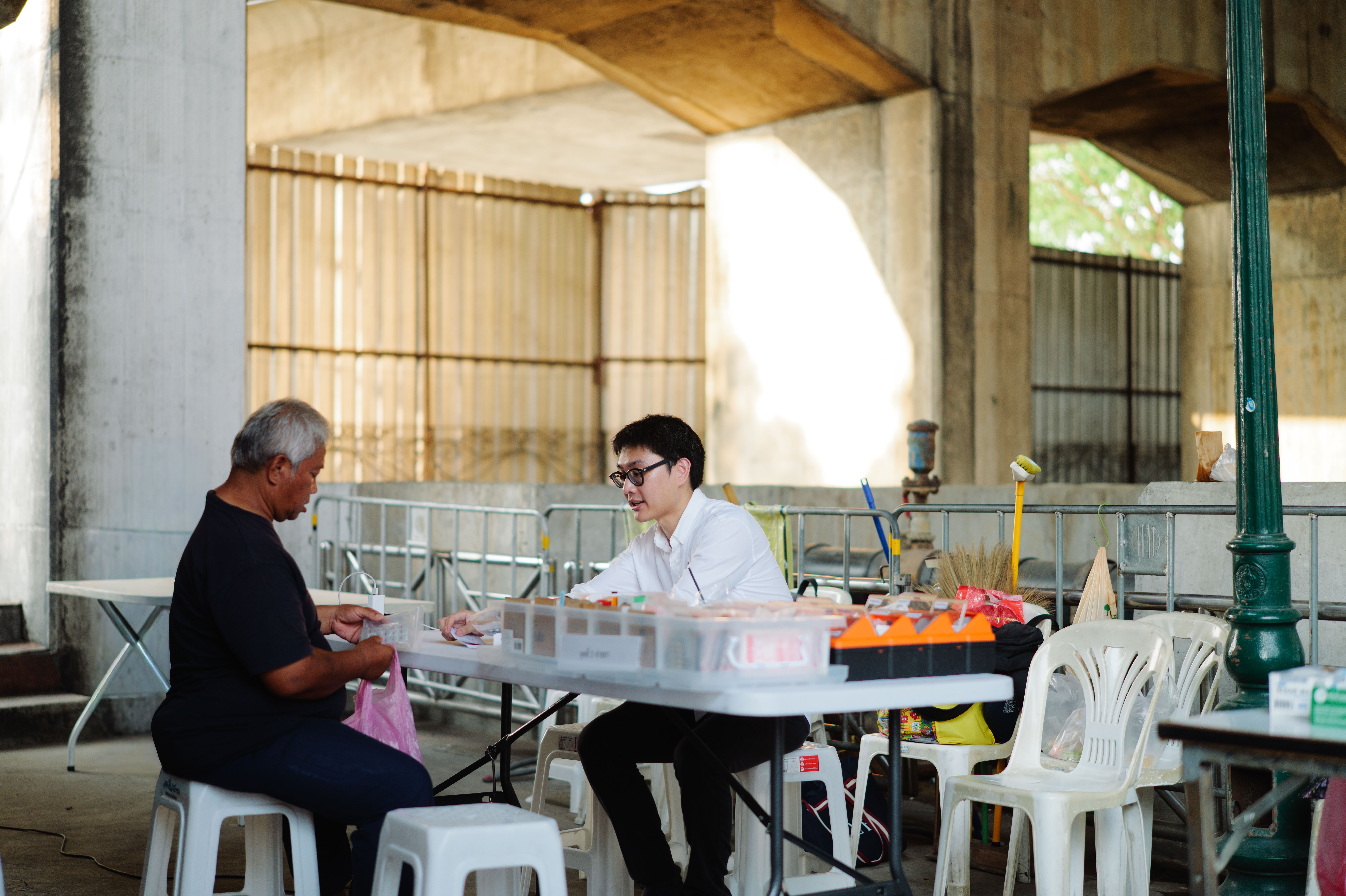 Anond Kulthanmanusorn (2023, Thailand) doing a consultation with a person experiencing homelessness